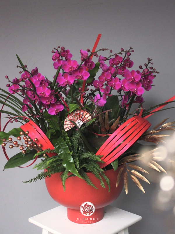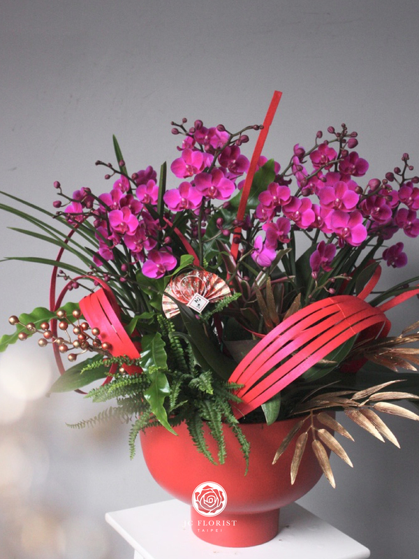 商品照片僅供**風格參考**,實際新年花禮將以設計師手作及**當日進貨的應景花材**(如:蘭花、銀柳、臘梅等)為主。