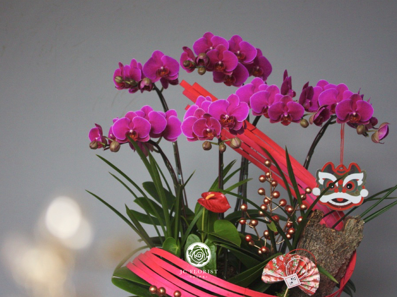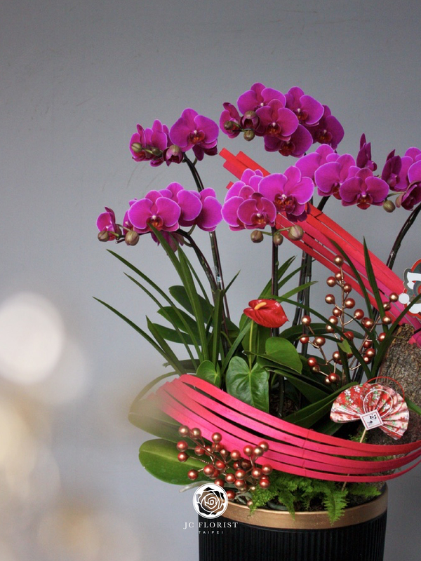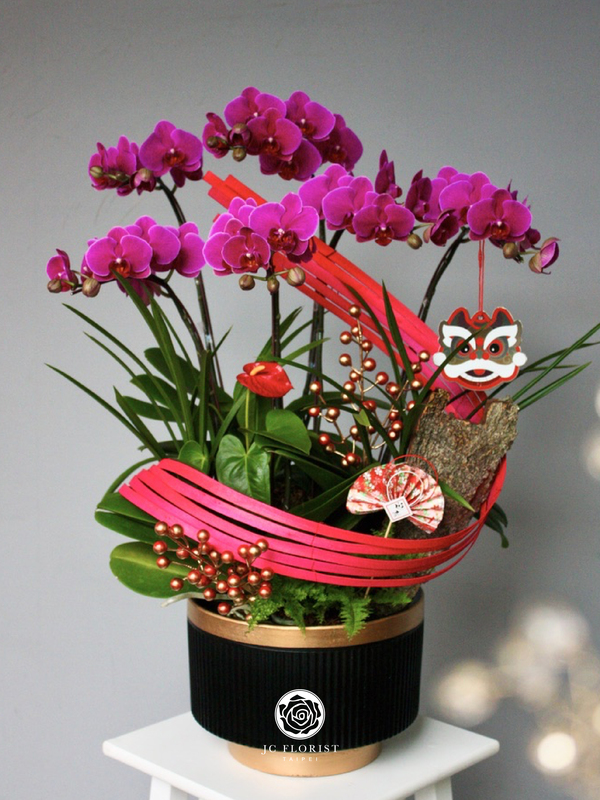 商品照片僅供**風格參考**,實際新年花禮將以設計師手作及**當日進貨的應景花材**(如:蘭花、銀柳、臘梅等)為主。