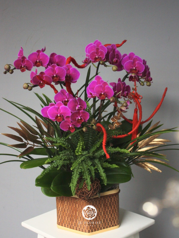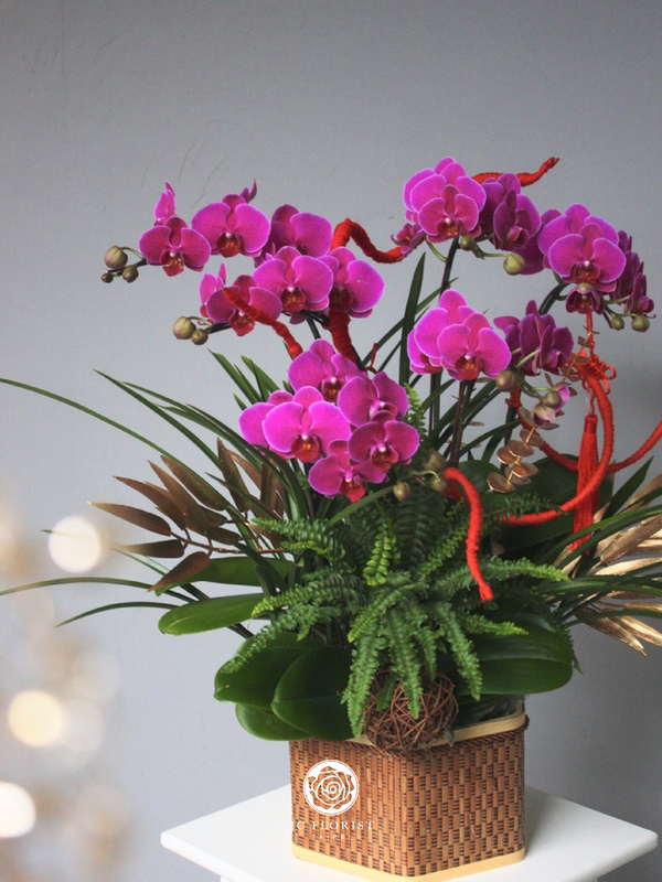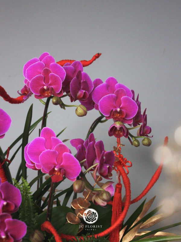 商品照片僅供**風格參考**,實際新年花禮將以設計師手作及**當日進貨的應景花材**(如:蘭花、銀柳、臘梅等)為主。